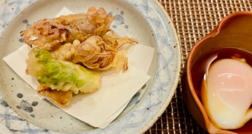 留鉢(蛍烏賊の天婦羅~御出汁と温玉で)