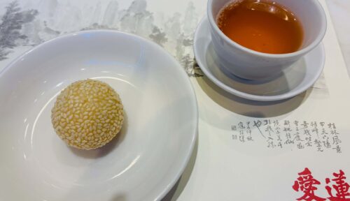 デザートのごま団子(絶品でした!)とジャスミン茶